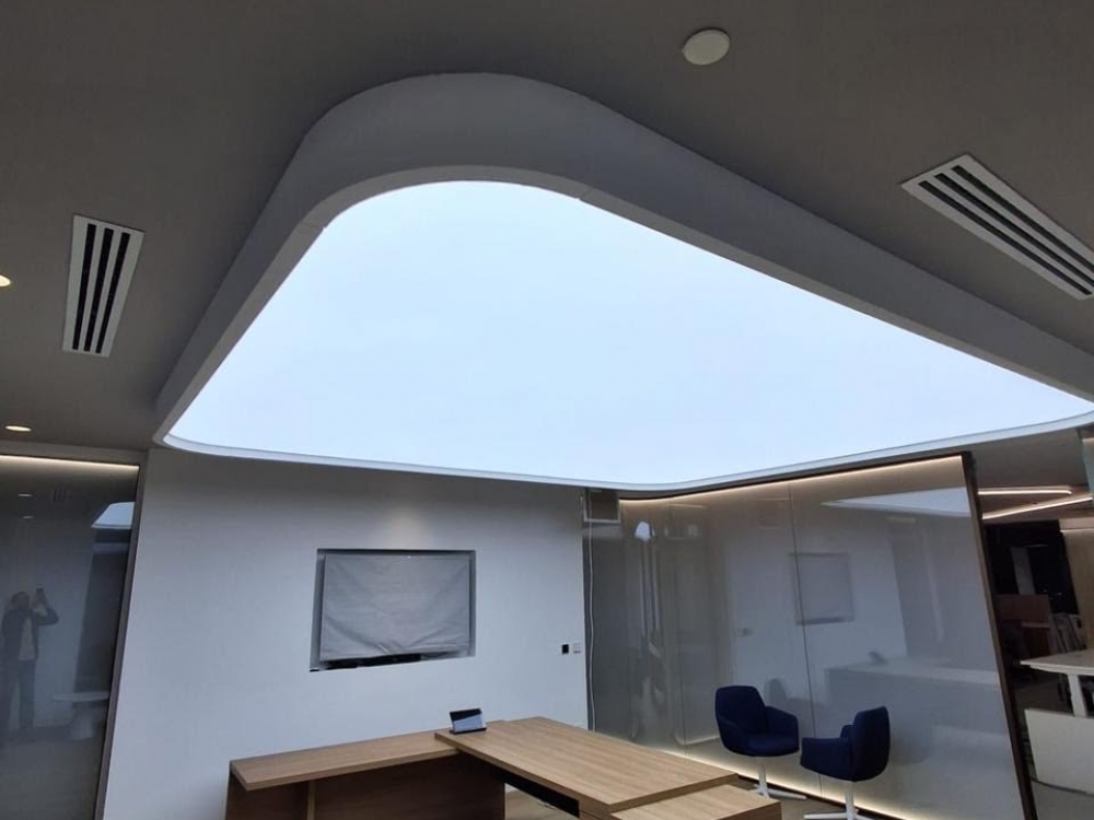 Backlit stretch ceiling is a striking design solution that combines modern aesthetics with innovative lighting technology. Featuring a translucent membrane with integrated LED lighting positioned behind it, this system creates a soft, evenly diffused glow across the entire ceiling surface. The result is an amazing , luminous finish that enhances the sense of space and a contemporary touch to any interior. Ideal for both residential and commercial settings, backlit stretch ceilings deliver a unique blend of style, ambiance, and functionality.